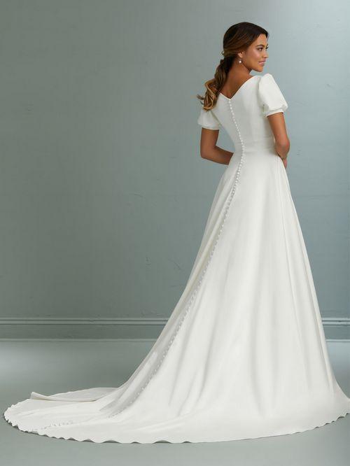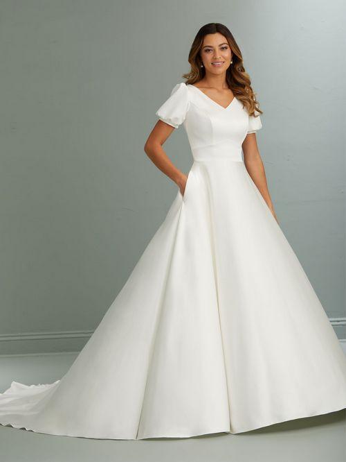 A beautiful collection of modest dresses. Some styles are also available in WHITE. Come see what we have to offer YOU at our bridal.